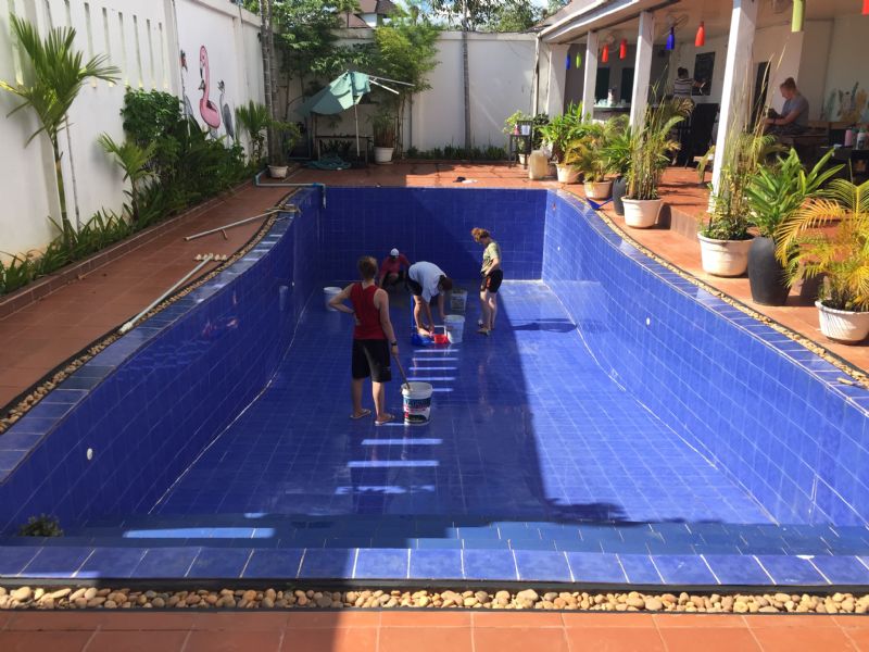 For the last few weeks, my team’s morning ministry has been deep cleaning the guest house where we stay. We had a lot of freedom on what we wanted this to look like. My teammate Gracie and I decided to tackle the task of scrubbing the mold from the bathroom wall and re-painting. My other teammates deep cleaned rooms, organized and repainted the smoothie bar, and fixed a fallen tree. After approximately a week of this, or focus shifted to the pool. The guest house was in their off-season, so the pool was partially drained and left alone. We found two crabs, a few lizards, and a centipede in there. It was pretty gross. We spent a couple days scrubbing, scraping, and emptying it. Now it is full and clean as ever! After some breakfast, a couple hours of cleaning, devotional time, lunch, and a couple more hours of cleaning, we took tuk-tuks out to Pub Street, the most touristy part of Siem Reap, and shared the gospel! During the first week of deep cleaning, we’d have a evangelism training after lunch instead of more deep cleaning. nap