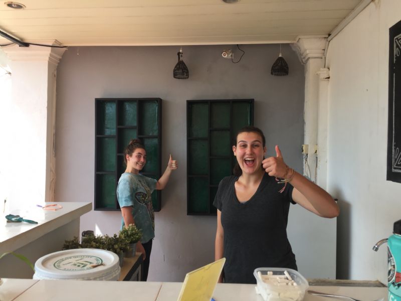 Margee and Jaynna and their beautifully painted and organized smoothie bar!