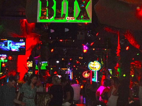 amidst all of the bars there is a banner flying that says FREEDOM (its at a Bob