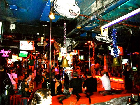 hundreds (maybe thousands) of bars, crowded around the dancing girls wearing