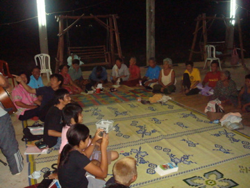 Good Friday at around 9:00 P.M. Team Blinkvah walked out to the covered pavilion of this small Thai church. Straw mats were spread out across the floor as we sat down and prepared for the next 6 hours. Mum had told us that Good Friday would begin with an all night prayer session, in Thai. Slightly worried about keeping our eyes open, we chugged a glass of coke and buckled down for the long haul.