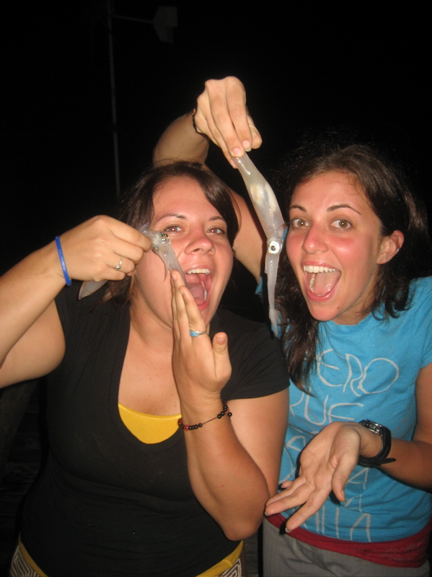 Kara and I enjoyed an evening helping CATCH our lunch. We had this freakishly large nets that were filled with crab, squid and fish. We caught it all and fried it up the next afternoon for lunch.