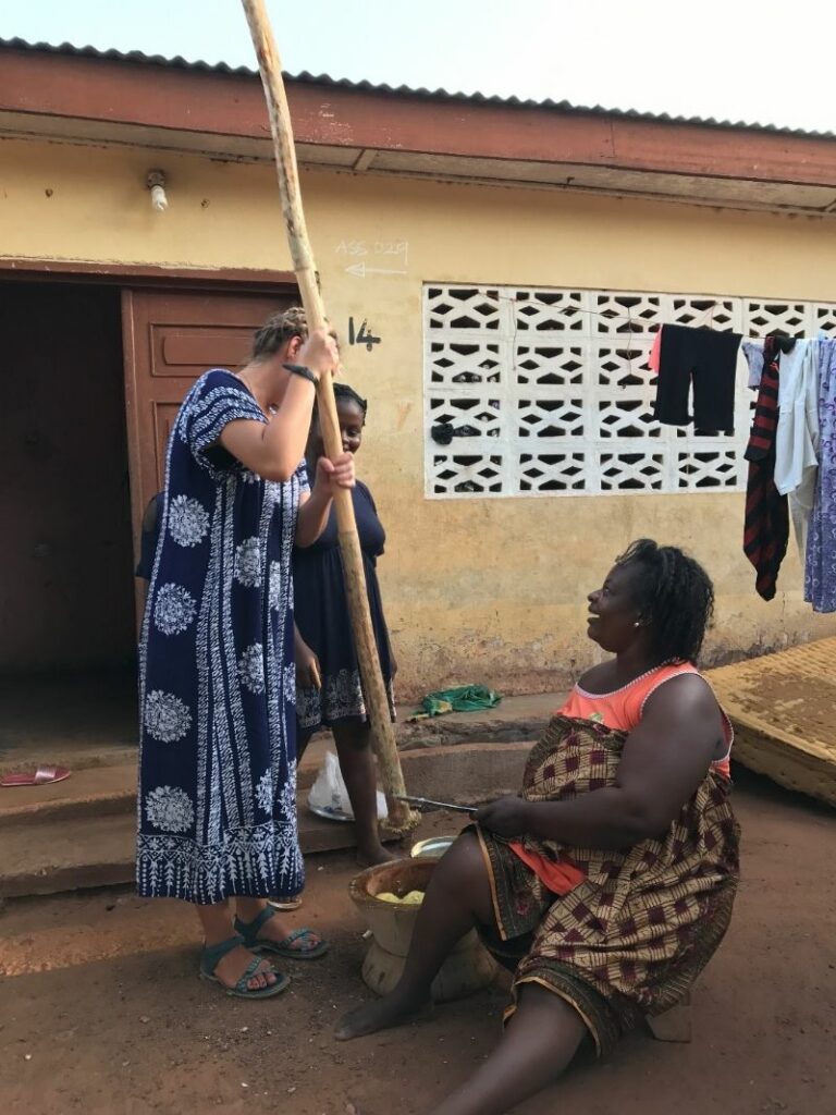 Greeted by my loving host family, I quickly became acquainted with pulling water from the well, bucket showers, eating whole fish and half my weight in rice. I learned the “African” way of doing laundry and adjusted to this life quickly. I couldn’t leave without getting a dress made, and so I became the “African woman” in my hosts eyes. Our adventure days consisted of getting off the island, and finding the ocean, really in search of a change of scenery since we couldn’t leave the compound.