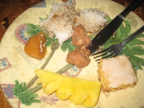 Here is a pic of our first yummy Philippino lunch- Adobo- Chicken and potatos in a soy sauce over rice.  Yum!