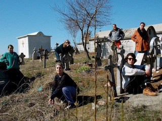 -We went for a walk while staying with Ion and Christina to a cemetery and took team pictures.