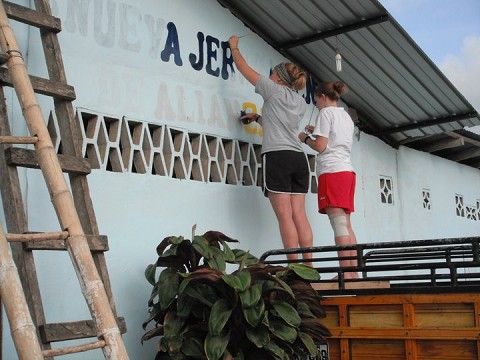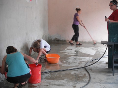 Another large part of our time here was spent painting. We started off with something small… touching up the Bible verses on the walls inside the church. Then we moved on to tackle the entire inside of the church, the inside of the school’s classroom, the front of the church, the front of the school, and the newly remodeled kitchen.