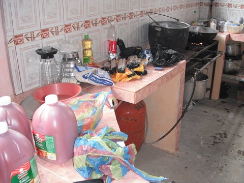 Getting ready to cook spaghetti in the newly finished kitchen for the church's anniversary.