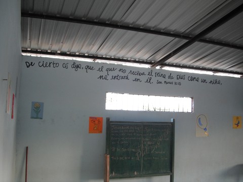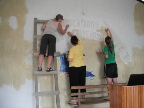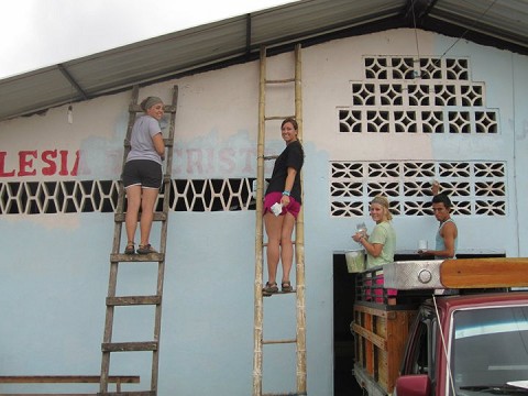 Another large part of our time here was spent painting. We started off with something small… touching up the Bible verses on the walls inside the church. Then we moved on to tackle the entire inside of the church, the inside of the school’s classroom, the front of the church, the front of the school, and the newly remodeled kitchen.