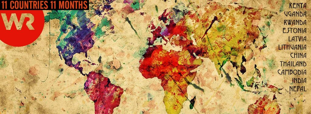 11 countries in 11 months:  Kenya, Uganda, Rwanda, Estonia, Latvia, Lithuania, China, Thailand, Cambodia, India, & Nepal.