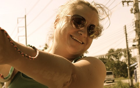 As I hung off the back of a Songthaew, driving through the mountains, all I could feel was FREEDOM coming at me along with the wind. I felt different than I had last week. I felt different than I had sitting at Launch in July. I felt HAPPY and LIGHT! I realized that I was NEW…..