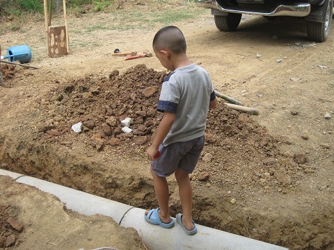 I’m chipping away at some rock so we can get the 4th pipe in place.