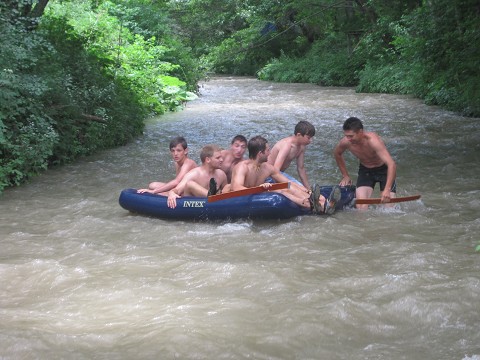 down the river on an air mattress in Ukraine.