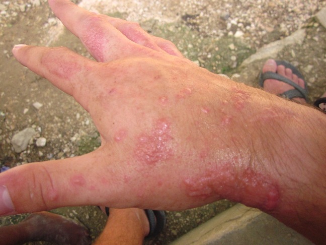 some of the worst poison plant rashes I’ve ever seen or experienced. Kam has it around his eyes, on the