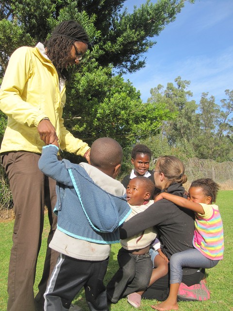 Me, caught between the two Peters (Peter Morkel, on the left, is our weekend ministry contact. He takes us to different townships and has a HUGE heart for the poor and for uniting the body across racial barriers. Peter Freeman, on the right, is one of our ministry contacts during the week and the principal of HDC. He is highly respected, feared, and loved by the kids.)