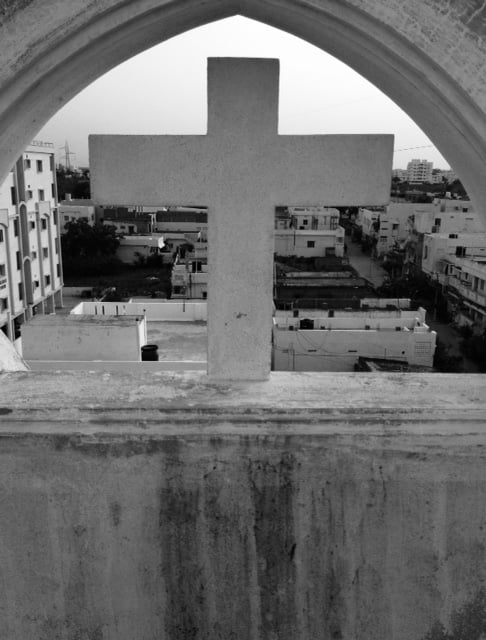 On the rooftop I saw the divine irony of following Jesus when I saw a dreary city behind a weathered Cross.