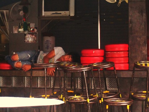 Taking a nap…. most bars are open untill the wee hours of the morning…