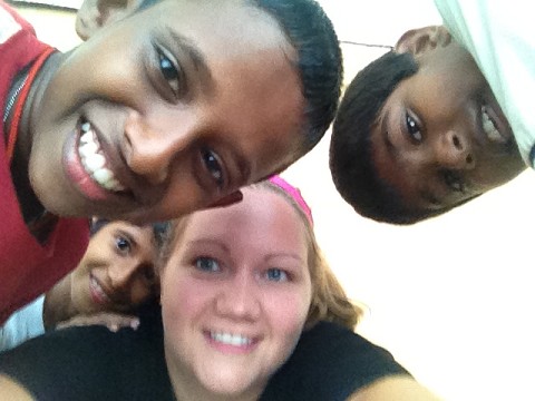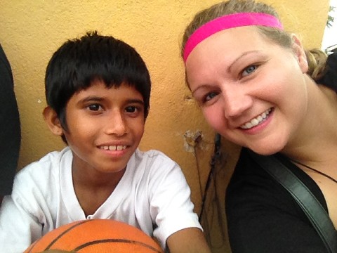 Upon arriving at the estate the children began filing into the hall and we headed out behind the building to play games with the kids. We fit in well with the kids kicking balls, swinging kids, and playing a new version of duck-duck-goose (running all the way around the building several times).