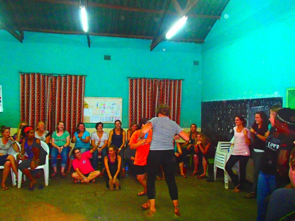 Our Malawi debrief squad game night and performing a commercial for “knuckle guards for heavy hand syndrome” with my team