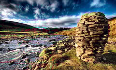 Then, the Lord led me one step further – we scratched off the struggles that we had written on the bottom of the rocks, and we wrote instead a victory on the top of the rock; something that we wanted to praise God for in our lives. Then we took them outside the cabin and down to the creek that runs by the campsite, and there we set up a “pillar of remembrance” so that every time we come to the campsite we will see it and be reminded to praise God for the victories that God has given us in our lives.