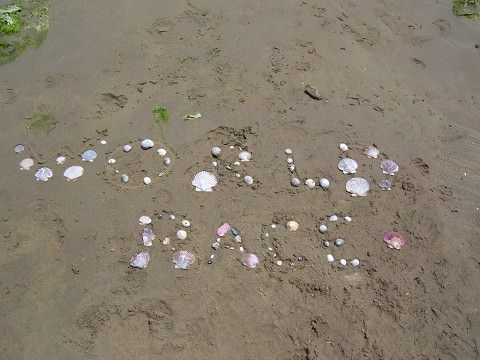 At the beach later on, I made this sign out of all of the beautiful seashells