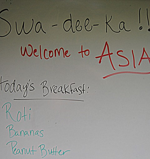 Each day was a different country/continent's food. It was great! Everyone had these expectations of horrible food (as some had read previous racer's accounts of "fish eye soup" at TC) but in all it was quite tasty. With the different foods we also had to adhere to the cultures way of eating; eg: no shoes, seated on the floor, women serving men at tables-then sitting on the floor with what was left (some of our guys got real ticked off that it was so sexist; we told them to sit down and enjoy being served for once, and to ignore that it was only by the women).