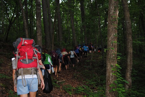 One evening we all hiked into the woods to set up camp and cook over a fire. What should have been a three hour tour….oh wait, I'm getting my stories mixed up…what should have been a 20 minute hike turned into a 2 hour getting lost hike.  It was great! Hot, but great (but then again, I love hiking)! With not a single complaint we arrived at our destination where we did end up being right on the lake.