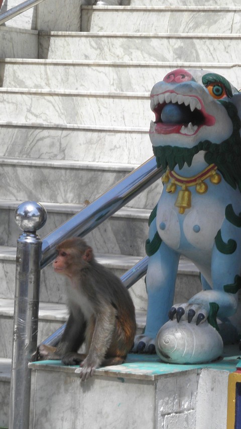 spectacular view over the city of Kathmandu and lots of monkeys.