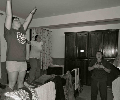 Kaitlyn, my team leader, began to pray over us and thanked God that we can worship Him even with our pants off. Amanda, Ashley, and Kim quickly realized I was pants-less and laughter broke out.