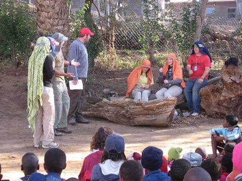 Doing a skit for all of the kids about becoming a follower of Christ. It was based on Matthew 4:18-22