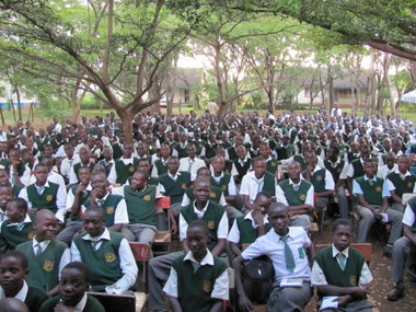 Before I knew it, the boys were done singing and I was being introduced. I got up and told them a little about myself. Then away I went. Another calming peace washed over me and I stopped shaking and just started talking (or preaching). I shared with them how our God is a good God. He blessed me and allowed me to come to Kenya to be with them this very day. I shared about my family, who God blessed me with and about growing up in the church. I then told them that they could personally know this same God if they chose so. I read them Psalm 111 and pointed out specific parts in the scripture. I reminded them that we are only human and we will always mess up and make mistakes and God will forgive us again and again. His mercies are NEW everyday! I then shared a scripture for them to pray, Pslam 51:10, “Create in me a clean heart, oh God, and renew a steadfast spirit within me.” I told them that we can always ask for a renewing of our spirit because God is so constant and we are not. He is happy to give it to us when we ask. Then I thanked them for letting me share and I passed it off to Leisa.