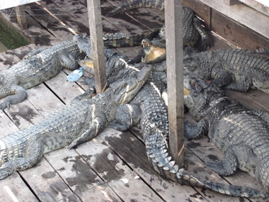 Before we knew it, we were docked at a “pit stop,” where we were encouraged to take a look at the crocodiles in a cage and then offered drinks for purchase on this floating rest stop, (yes, it’s times like these I chuckle and think, this is my life). We each bought a can of pop and decided we didn’t need to stay any longer and we got back in our boat.