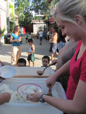 Yesterday I had yet again, another unique experience here in the Philippines. I went to a feeding with Kerry, Emily, Jeane and Nichole. Some of my squad’s ministry this month is feeding local children twice a day, 10 am and 4 pm. I went along on the 4 pm shift. What the team does is cook rice and some type of meat in the afternoon and pack it up for the evening. They cook enough to fill two large tupper ware bins worth of food.