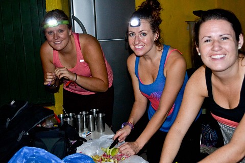 Here are the ladies of my team cooking in the kitchen with headlamps! We didn't have electricity most of the time so we learned quickly how to adjust to cooking WR style.