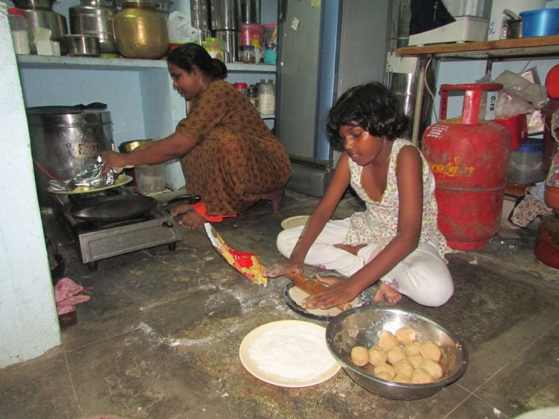 My team is blessed this month with a wonderful host family that feeds us more than enough food to get by. Our host mom tries to please us by cooking something new each day for breakfast followed by chai tea or coffee. One night, I got to help cook chapatti, a food that most closely resembles a tortilla. Though not everyone is fond of the spicy hot food, I enjoy it very much. We also have a fairly nice squatty potty, bucket shower and fans to keep us cool in the blazing heat.