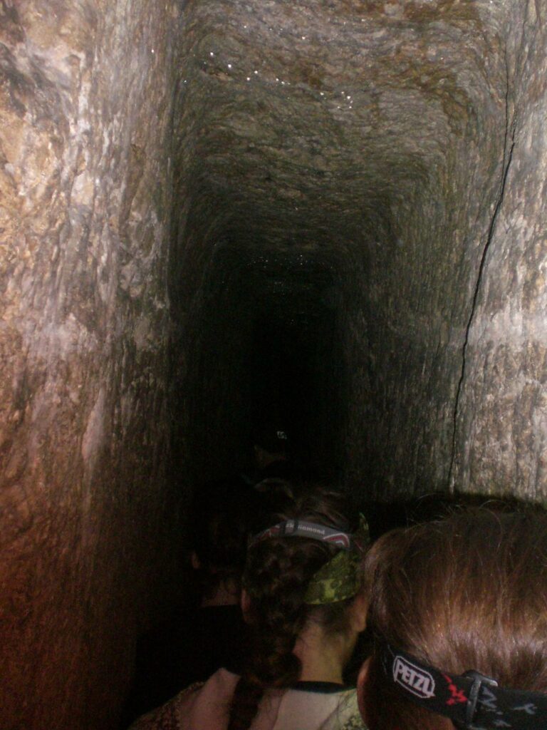 Going through Hezekiah’s Tunnel in Jerusalem