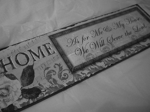 The hosts grabbed our prizes and just handed one to each of us. Her mom opened hers first: a set of glass bottles to put around the house. I assumed I had the same thing in my bag and honestly felt weird about opening a gift at someone else’s shower, so I set the bag on the ground next to me. But there was something sticking out of it; definately not bottles. So I push away the pink tissue paper and lift out a sign. It’s a pretty wall sign, like one you’d buy at Target or Bed, Bath, and Beyond maybe. At first I saw the word “HOME” and thought “wow that’s ironic”. I laughed to myself about the fact that not only am I moving out of my house very soon to travel the world, but also because my mom sold our house back home this week: so technically at the moment I am homeless. Funny stuff, God. I was about to put it back in the bag without reading the phrase on it, figuring it was something typical like “Home sweet home”. But then the word “Lord” caught my eye. I read the verse on the plaque…“As for me and my house, we will serve the Lord”