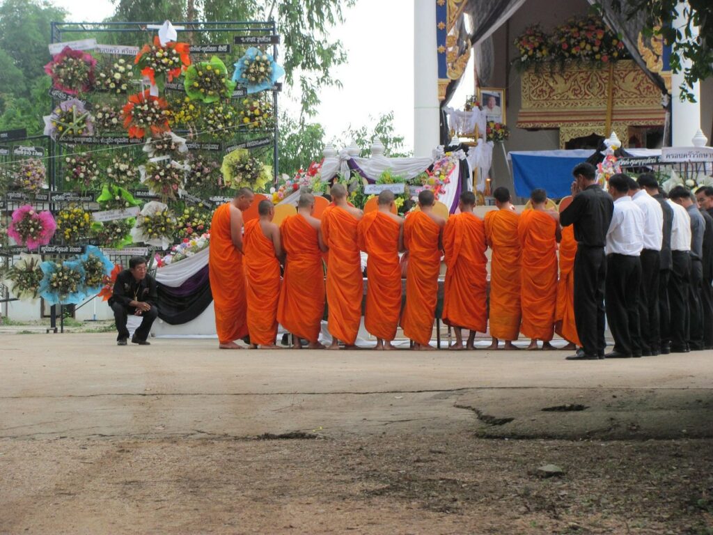 -One of the first days we were there we attened a Buddhist funeral. There were 92 monks in attendance because the woman who had passed away was 92 years old.