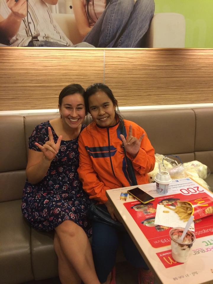 From a early age I fell in love with sign language. It captivated my attention. While my sisters would go and find story books at the library I would go and wonder around looking for books about sign language. Sitting on my bunk I would curl up in a ball and stare at the pages. I would sit there practicing the signs feeling content. Through out the years I had opportunities to sign worship songs for children’s church or watch our church’s ASL (American sign language) interpreters sign throughout church service and my curiosity continue to develops. In 8th grade I enrolled in an ASL classes where I continue to study and dive into a whole new world. I studied for four years and when I stopped taking courses I was a level two interpret. I ended up changing routes and dropped sign language and moved to Brazil for my internship with IMB missionaries. For the past three years the only thing I have used sign language for was to watch Switched At Birth on ABC without subtitles, “listening” into others conversations while waiting for my mom at the mall, and signing to my friends the few signs I taught them so that we could communicate in different situations and others wouldn’t know what we were saying haha! But during the parent vision trip my folks and I were in a bar ministering to some of the girls we meet the night before and a girl came up to us with a sign saying that she was deaf. Without even thinking about it I just started signing to her. She told me here name and then asked “Are you a christian?” it turned out that she not only knew American Sign Language, but she also knew Jesus. She goes throughout the bars selling stuff animals to make extra money so that her son can go to a deaf school and uses that time to ministry to the deaf girls who have to work in the bars. She shared how she hurts for the deaf community where she lives because so many deaf girls ended up on the streets. So she decided to ministry and befriend the girls in the bars. Every night after putting her son to sleep she goes to bars and talks with the deaf girls about God and just about life. We sat together for five hours just talking. She continued to say that she was so blessed to have met me, but folks, I am positive that I was the blessed one. She was the sweetest and cutest thing. Before I had to leave I got to translate my dad praying for her and her prayer for my family. Ah! It was so neat! I am still in shock I meet a Thai deaf girl who learned ASL a couple years before so that I could encourage her in her ministry to reach out to the deaf girls in the bars in the city of Chiang Mai, Thailand. Like what?! I love my life! Who would have known that all the countless hours I spent studying this beautiful language was preparing for times like this.