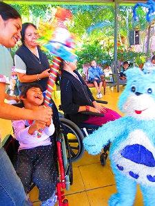 Today we went to a home where children and people with brain paralysis or cerebral palsy live. We went not knowing exactly what to expect because it was the first time our hosts had been there as well. We prepared a couple songs and a skit and brought along a couple pinatas. What we found was joy, love and pure excitement. These people came alive at the touch of a hand, at one hug or just a greeting. As I was talking to one of the workers at the home I found out that the residents hardly ever get parties and that they were so excited to have us there for that reason. They danced in freedom and we stepped into that freedom and danced with them as well. It was a great day. My favorite part of today was spending time with some of them individually, loving on them and praying over them. My favorite was this little boy whose name I don’t even know but as I was praying for him and singing over him and speaking into him I felt like he calmed down and became more receptive to what I was saying and was even interacting with me. We had to leave but we will be back next week and I can’t wait to see him again and pray for him again and sing over him again. Here are some pictures from today, enjoy!
