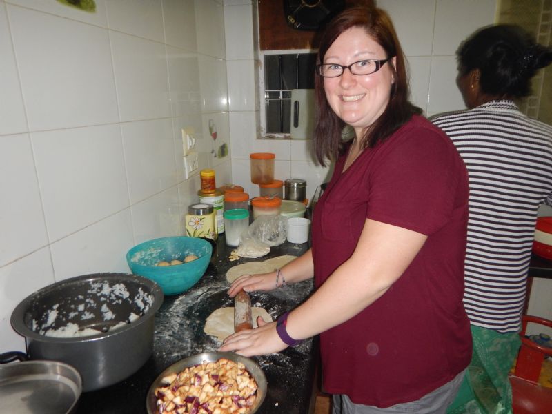Well, I’m writing to you from India! After a 13-hour plane ride to Qatar, we had a 2-hour layover and then a 4-hour plane ride to Hyderabad, India! We arrived in Hyderabad around 2am, went through immigration, got our bags, boarded a bus and arrived at the house where we were staying around 5am. So, by the time we got everything in the house and situated, we were able to get some sleep from about 6am-12pm. The jetlag hit me pretty hard. We had orientation at 2pm till and everyone was super tired. We had a few days to explore Hyderabad and on the 9th, my team and I took a bus down to Bangalore. However, we didn’t take a normal bus. Since we were traveling at night, we took a sleeper bus so we got to literally lay down, and sleep on the bus! It was wonderful! We arrived in Bangalore safe and sound and had a day to rest before we started ministry. Our schedule for ministry was going to a ministry in the mornings, come home for lunch, rest and then go back out around later afternoon to usually go visit a church or do home visits where we would pray over people, sing some worship songs and give testimonies or encouraging words. We got to visit a few orphanages and the kids were so cute! I wanted to take them all home! We had a lot of fun playing games, teaching them Bible songs and telling stories! The children were always so eager and energetic when we would visit! I can’t describe to you the feeling of having to eat rice and curry for literally every meal. Our cook would sometimes change it up and use potatoes or a food sort of like grits instead of rice but you could guarantee that there would be curry and hot peppers in every meal. I’ve learned to be thankful for the food I get to eat, even if it is rice and curry. I did, however, learn to make one of our favorite foods, called chapatti! It’s almost like a fried tortilla but a little less fried and it’s made with wheat flour. We love eating it! This is Regina, our cook. She doesn’t speak English that well but she gets her point across when she needs to!