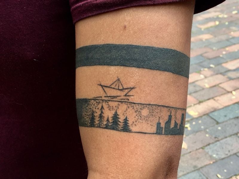 It was 2 bands around his left arm. The top one was solid and the other had a cityscape that turned into a forest. In between the two bands was a sailboat. Now, it just so happens that since the beginning of the summer, Jesus has been speaking to me through sailboats, water and anchors, so I was obviously intrigued. I asked him what his tattoo meant and he explained he has a dream of selling his home and car and owning a sailboat. As he explained, I glanced down and there was a bracelet with an anchor on it at my feet.