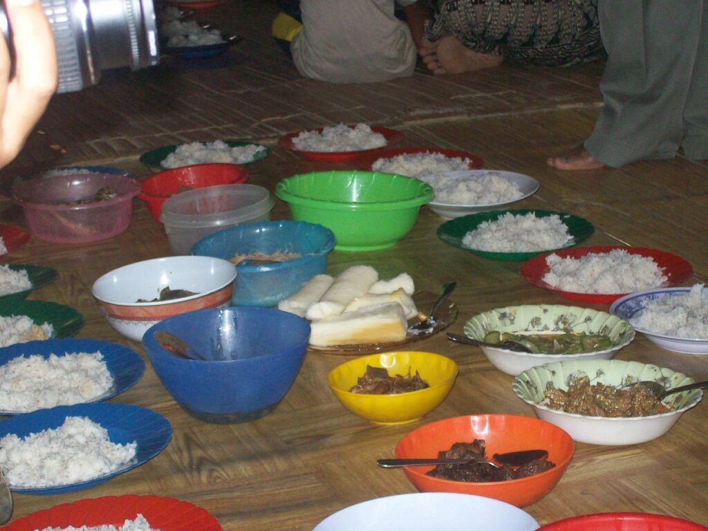 Made “rice burritos.” Put rice in a banana leaf and fold it up. Then put it in bamboo with water and cook it over the fire.