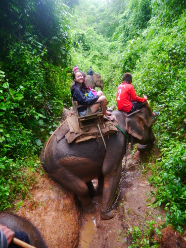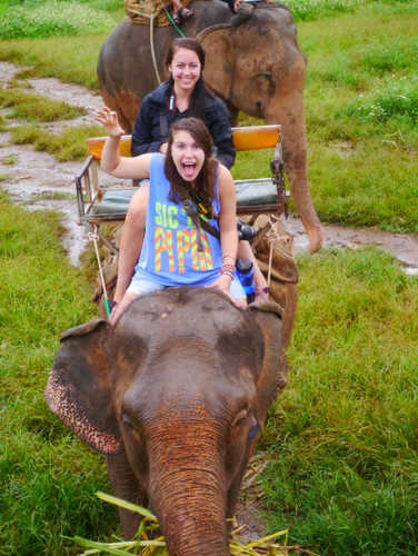 Linley was my elephant riding partner! this is our elephant, who we named Sam, but later found out was a girl.