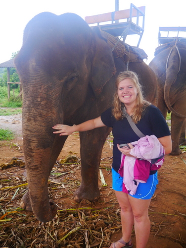 Linley was my elephant riding partner! this is our elephant, who we named Sam, but later found out was a girl.