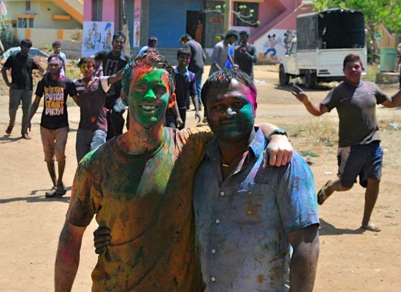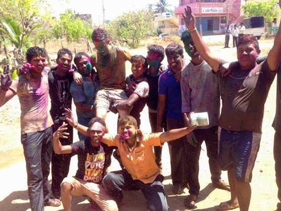 As we woke up our first morning in Chitradurga, a small village a couple hours outside of Bangalore, the men in the house across the street were out early hanging what looked like a flower pot above the road and pouring water into buckets. Soon they blasting a mix of cultural Indian music mixed with more modern dance beats. Hearing the speakers, more college-aged men began gathering and dancing in the streets. As we watched from our balcony next door, they invited us to join.