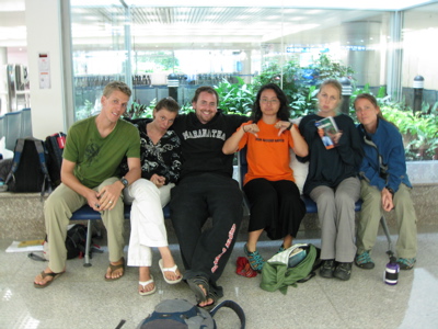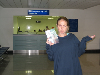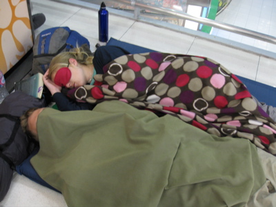 Sleeping in the Bangkok Airport after missing our first flight                  Mixed emotions at Tan Son Nhat Airport, Vietnam