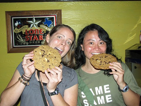 and the diamond stud complements her adorable dimples.  (pic 1: makes my heart a’flutter!  2. elephant ride partners  3. cookies the size of our faces at Duke’s in Chiang Mai, Thailand)