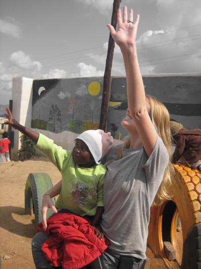 One of my favorite little girls and I are reaching to catch a bubble during play time. This girl is usually downcast and shy. I don’t know her story yet after going on some home visits, I can see that due to HIV/AIDS, many parents are gone and children are being raised by aunts, grandparents or siblings.  I can also see how vital the Children’s Village (aka orphanage) we are staying at in our time here in South Africa (helping to clean from mold and paint next week for its grand opening next month) will give many children like her a way to have a new family an be well loved and taken care by local pastors and their wives. Our home visits will help determine which children in the community have the highest need.