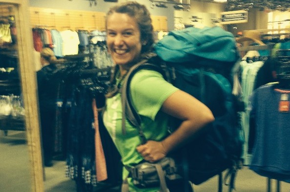 As my mom and I walk into the store, it was immediately evident that we were out of our element. We quickly found someone to help us look at various items. The lady decided that trying on backpacks was the first thing to do…(my first backpack try on up above). Pardon the cheesy grin…I was bursting at the seams with excitement about this opportunity. At the same time I was also humored by the fact that I of all people would be preparing to live out of a single bag for a next year.