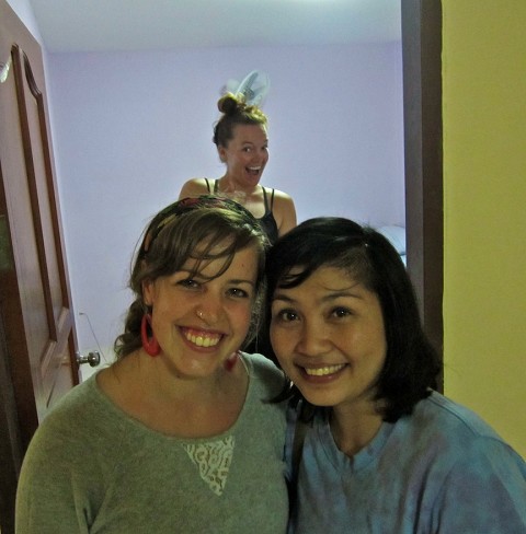 Apple, my teammate Ruth, and me getting ready for our sleepover.